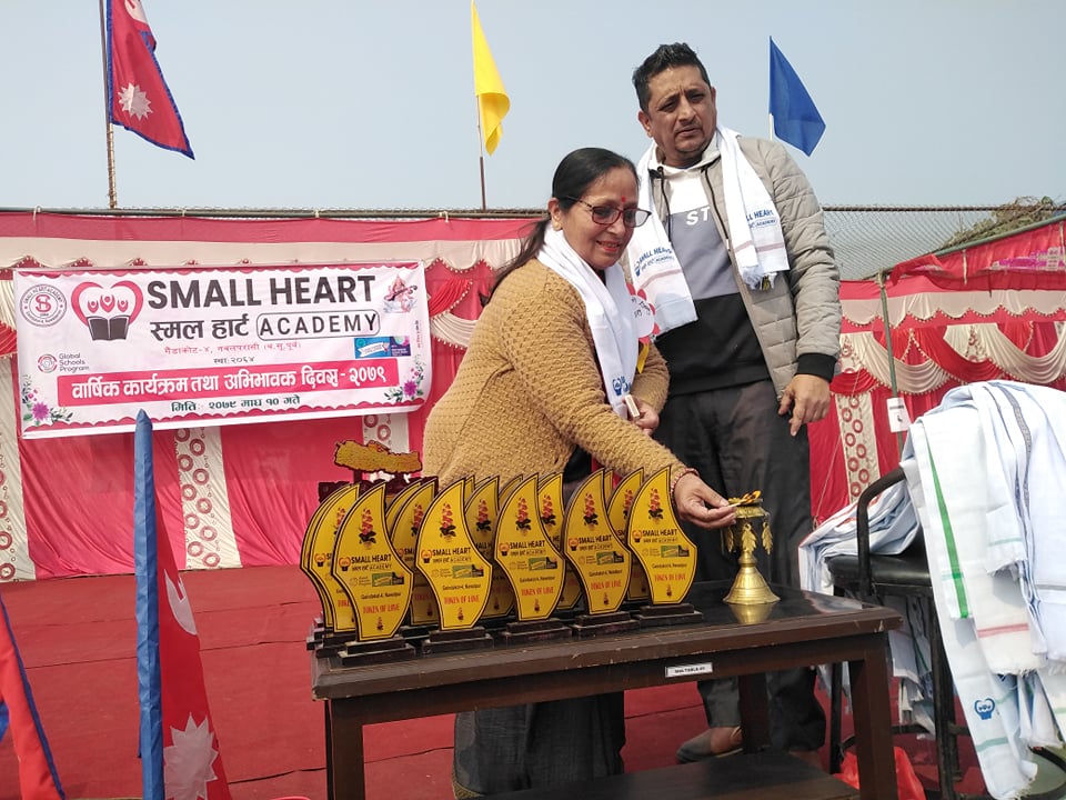 • गैँडाकोट, नवलपुर । नवलपुरको गैँडाकोट नगरपालिका वडानम्वर ४ मा रहेको स्मल हार्ट एकेडेमीले आफ्नो वार्षिकत्सव तथा अभिभावक दिवस २०७९ कार्यक्रम भव्यतापूर्वक सम्पन्न गरेको छ।
