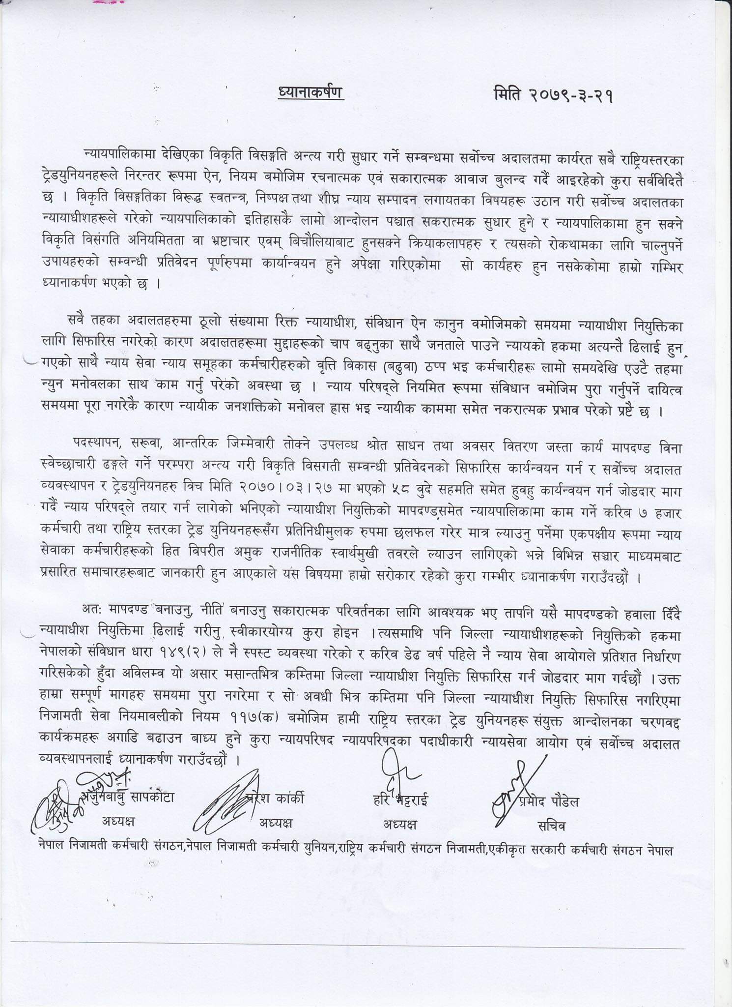 न्यायधिसहरुलाई नियुक्त नगरे चरणबद्ध आन्दोलन गर्ने
