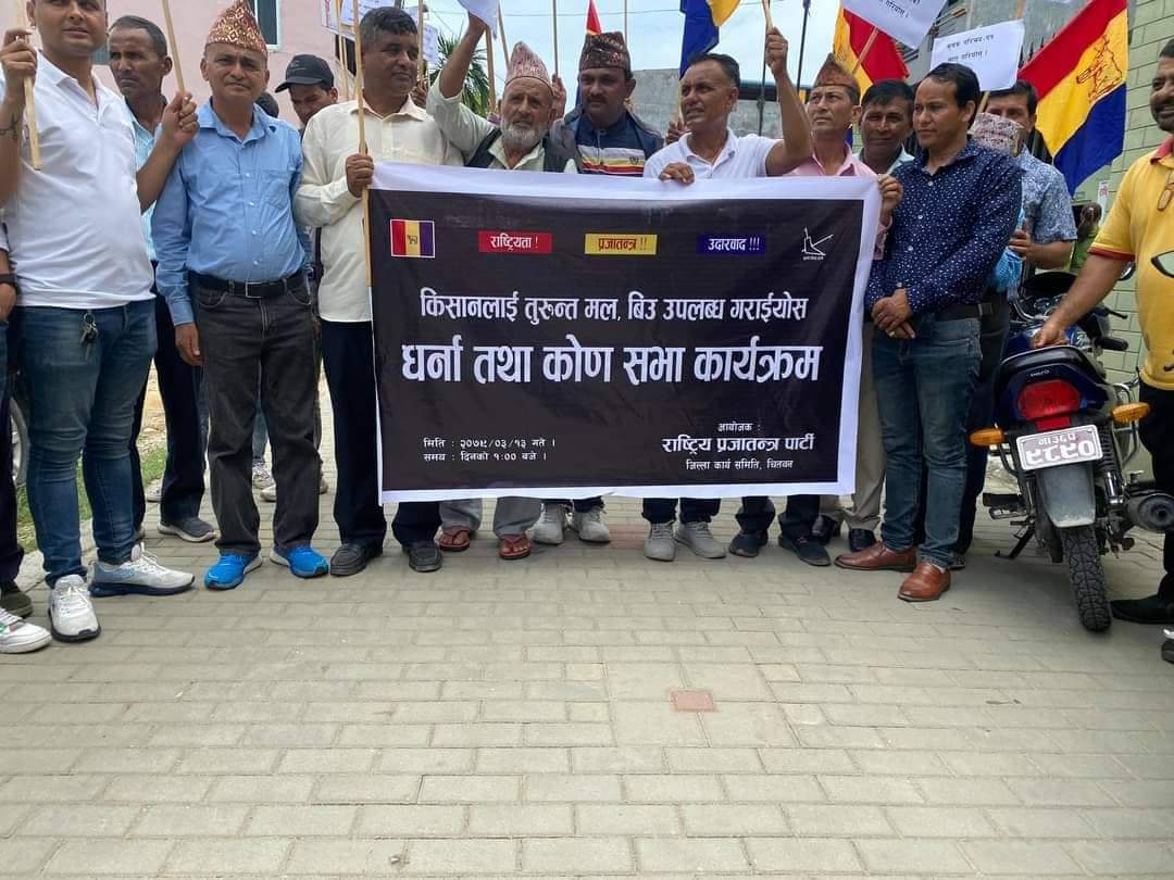 किसानकाे हितमा काम गर्न राप्रपा चितवनद्वारा सरकारकाे